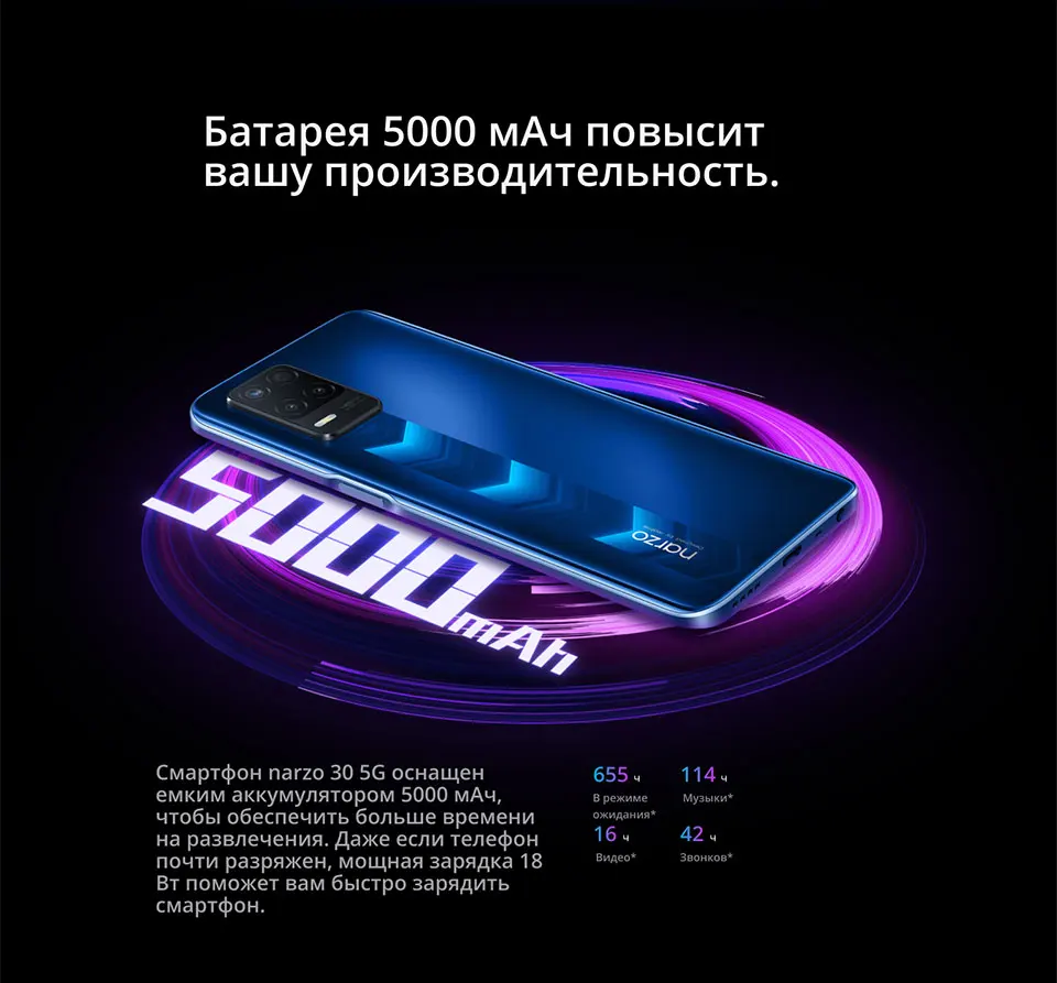 ТопRealme Narzo 30 6/128Gb NFC (Blue) Global Version, фото 1