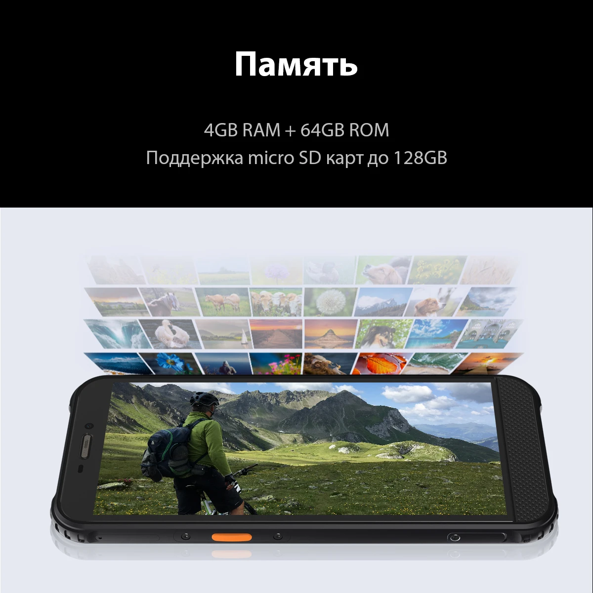 Цей телефон призначений для міцної території. Характеристики містять повний захист від крапель, пилу та